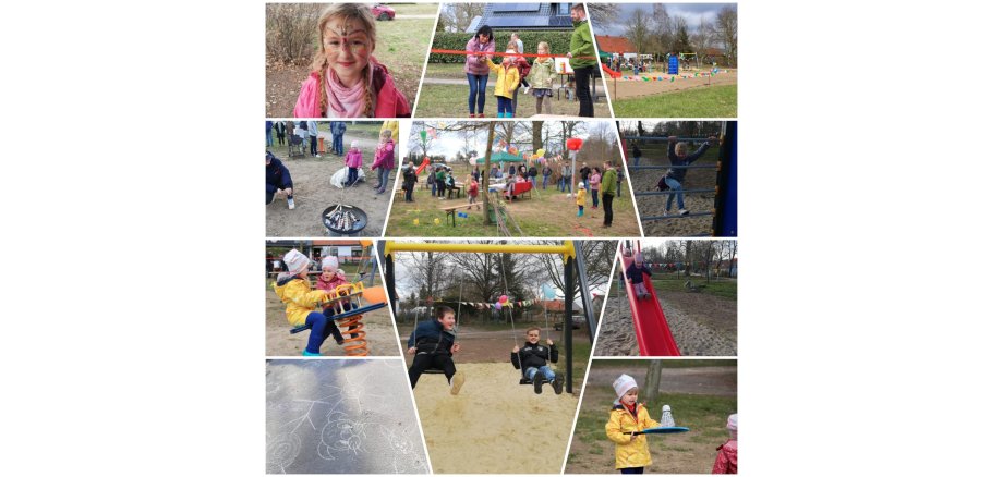 Herr Vogel hat in Stellvertretung der Bürgermeisterin zusammen mit der Ortsbeirätin Frau Naussed den Spielplatz offiziel mit einer Rede eröffnet. Lotti Focke durfte dabei helfen und das rote Band durchschneiden. Alle Anwohnerinnen und Anwohner des Dorfes freuten sich sehr darüber und feierten dies zusammen mit den Kindern. Jeder brachte etwas an Kaffee und Kuchen mit und so war es ein rundum schöner Nachmittag mit viel Spaß und Spiel.