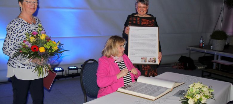 Den Empfang nutzte die Bürgermeisterin Frau Witt einerseits, um auf die Entwicklungen der Stadt der vergangenen 3 Jahre zurückzublicken und einen Einblick auf die Vorhaben in 2023 zu geben. Höhepunkt des Abends waren Ehrungen wichtiger Persönlichkeiten der Stadt, die mit dem Eintrag in das Ehrenbuch der Stadt verbunden waren.