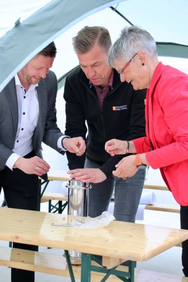 Am 05.06.2024 fand die Grundsteinlegung für das - Vorhaben Neubau Feuerwehrgerätehaus mit 6 Stellplätzen- mit vielen Projektbeteiligten statt. Herzlichen Dank allen Beteiligten.
