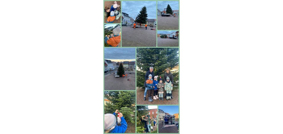 Der Weihnachtsbaum in Loitz ist eingetroffen. In diesem Jahr kommt er aus dem Ortsteil Düvier. Vielen Dank der Familie Thun aus dem Ortsteil Düvier für den schönen Baum und für den Transport und das Aufstellen des Baumes herzlichen Dank an die Männer des Bauhofes. Heute schmückten traditionell wieder Kinder, in diesem Jahr die "Kita Mäusenestchen" aus Düvier, den Baum mit selbstgebasteltem Schmuck.