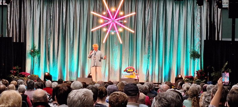 Erneut zog die Veranstaltung „Die Frühlingsshow“ zahlreiche Besucher in die Peenetalhalle. Vor Beginn der Vorstellung bestand die Möglichkeit, im Foyer Kaffee und Kuchen zu genießen, welche von den Schülerinnen und Schülern der 10. Klasse der Regionalen Schule Loitz angeboten wurden. Pünktlich eröffnete Heidi Taxi, die verantwortlich für das heutige Unterhaltungsprogramm war, die Frühlingsshow und hieß die zahlreichen Gäste willkommen.