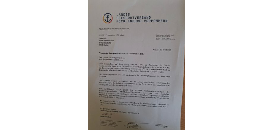 Am 12.09.2026 wird die Landesmeisterschaft im Kutterrudern in Loitz stattfinden.